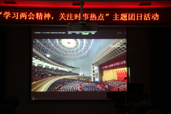 柴晨同学向大家介绍了"两会"的相关知识,使大家对"两会"有了充分的认识。与大家分享了两会中习近平总书记的"十大金句",他希望同学们通过认真研读这十大金句,感悟习近平总书记的要求和期待,创新思维,把握时光,不负韶华。最后,通过观看十三届全国人大一次会议开幕式的视频,同学们听取了李克强总理的2018政府工作报告,并对报告中所涉及的医疗、教育、住房、就业等民生话题有了一定的了解和认知。