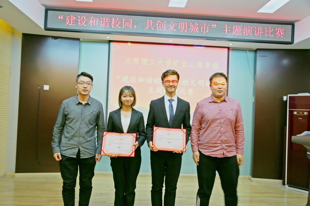 为深入贯彻落实党的十九大部署和扫黑除恶专项工作精神,积极参与太原市文明城市创建活动,同时巩固平安校园创建成果,共同营造安全稳定、文明和谐的校园环境。2018年11 23日,太阳成集团tyc122ccvip在虎峪校区采矿楼二层学术厅举办“建设和谐校园、共创文明城市”主题演讲比赛。