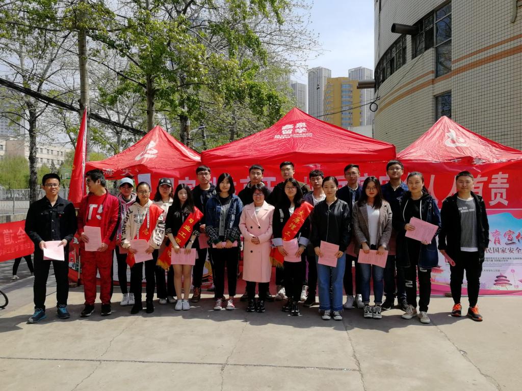 活动现场悬挂了“增强国家安全意识 共同维护国家安全”等宣传条幅;展出了“全民国家安全教育日”相关知识的专题展板;发放了1000份内容包含《国家安全法》、《反间谍法》、《网络安全法》、《发恐怖主义法》、《核安全法》等国家安全法规的宣传单;往来同学们纷纷驻足,在“国家利益高于一切 国家安全人人有责”条幅上签名誓言。