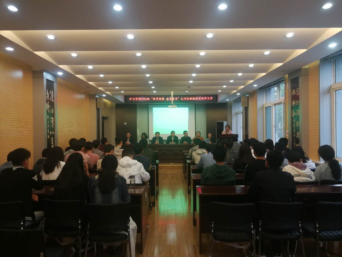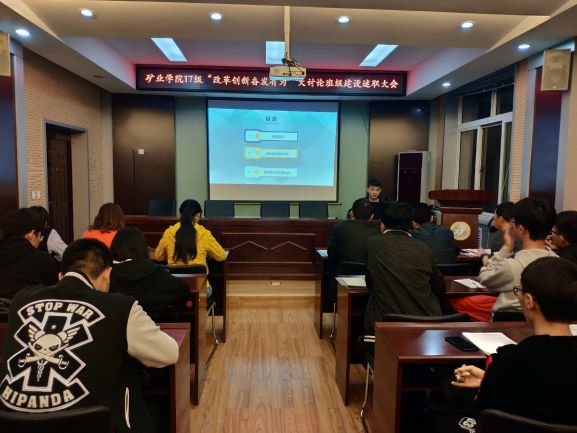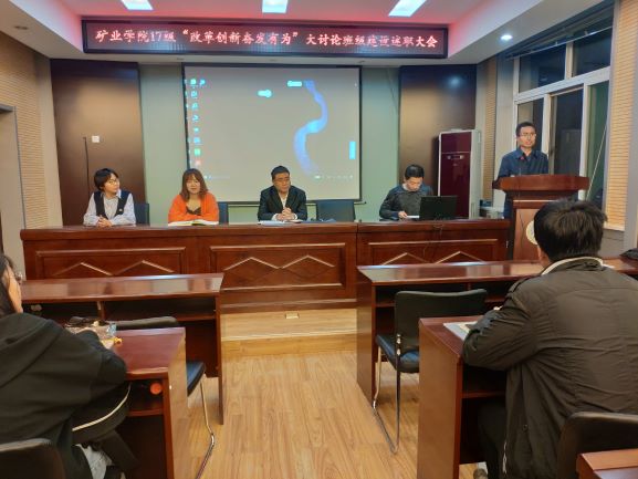 4月17日至19日,太阳成集团tyc122ccvip在虎峪校区采矿楼二层学术报告厅召开“改革创新 奋发有为”班级建设述职会,公司党委副书记武佐君,员工工作办公室主任刘宏伟,团委书记张丁香、副书记刘安,全体辅导员出席会议。2017、2016级全体班长、团支书参加了述职汇报,会议由年级主任洪俊、石婷主持。