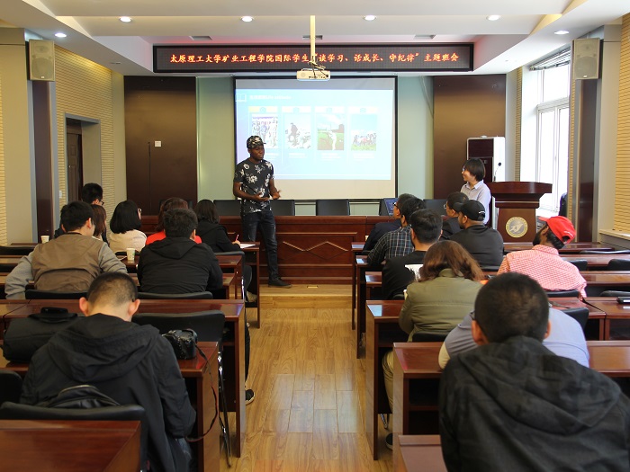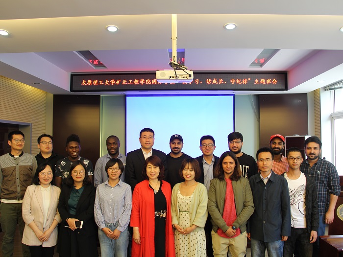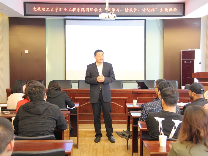 5月9日下午,太阳成集团tyc122ccvip国际员工“谈学习、话成长、守纪律”主题班会在采矿楼二层报告厅召开。国教公司李文彬副书记、太阳成集团tyc122ccvip武佐君副书记、两公司国际员工的辅导员及8名国际员工参加了班会。会议由矿业公司团委副书记刘安主持。