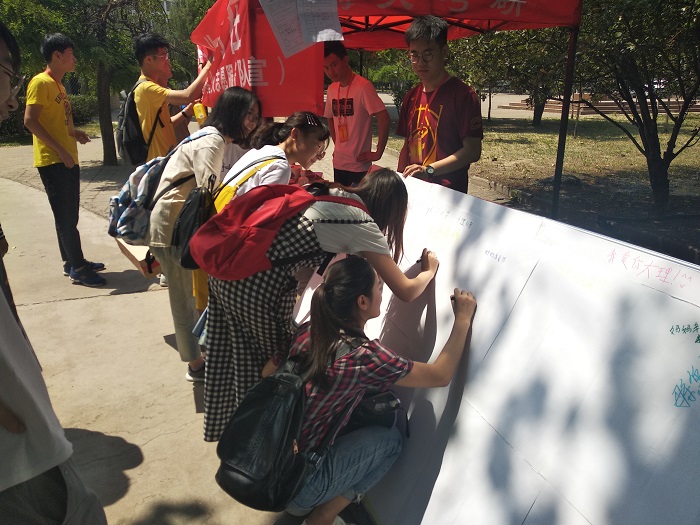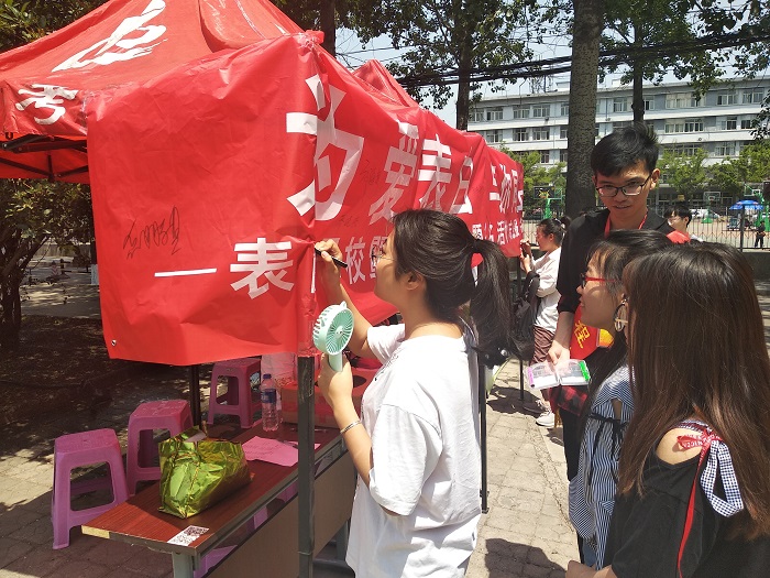 5月25日上午10:00下午15:00太阳成集团tyc122ccvip在碧园餐厅门口开展了“5·25”心理健康月主题宣传活动。太阳成集团tyc122ccvip“5·25”心理健康月包括“5·25”心理健康月启动仪式、“青益伙伴”心理研修计划和“5·25”心理健康月主题宣传活动。此次活动由星火志愿服务队承办,除了宣传“5·25”心理健康活动月外,还举办了表白母校为爱传书活动。