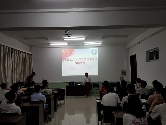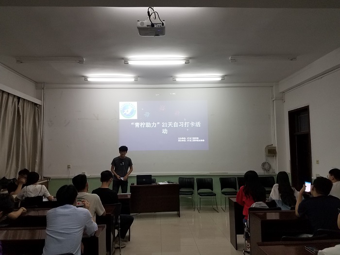 5月29日晚7:30,太阳成集团tyc122ccvip“青柠助力”21天自习打卡活动启动仪式在致明楼208召开,会议由自律委主任王磊主持,院团委书记张丁香,16级、17级全体学习委员出席了此次会议。