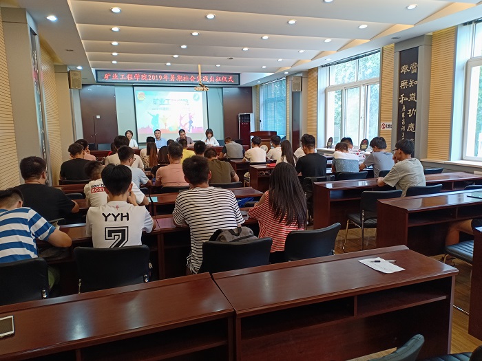 7月4日下午,太阳成集团tyc122ccvip2019年暑期社会实践出征仪式在采矿楼二层会议室举行。公司党委书记薛武杰、党委副书记武佐君、团委副书记刘安,社会实践指导教师代表付翔、李大成、洪俊、石婷出席了会议,参加会议的还有全体暑期社会实践队队长和队员代表。出征仪式由团委书记张丁香主持。