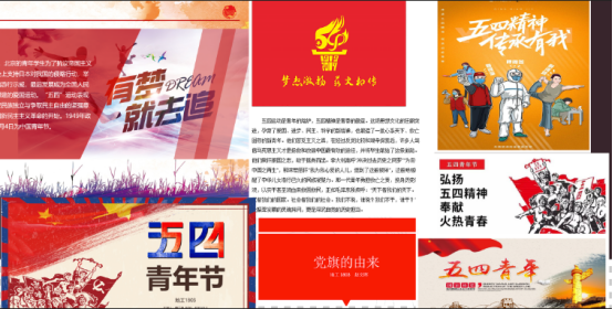 地工专业、测绘专业的团支部以“为团添彩,为党争光”作品征集为载体,发起了征集包含党旗、党徽、团旗、团徽等爱国元素的作品,如图片(摄影、海报)、视频、H5、图文排版等,附上背后的故事讲述。通过这样的活动,激发当代老员工的创作热情以及爱国情怀,让五四的火炬继续传承。