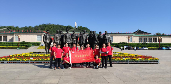 实践队离开八路军纪念馆,来到凤凰山。队员们来到徐向前元帅雕像前,向元帅致敬。实践队全体成员来到纪念碑下和八路军将领组雕前合影留念。