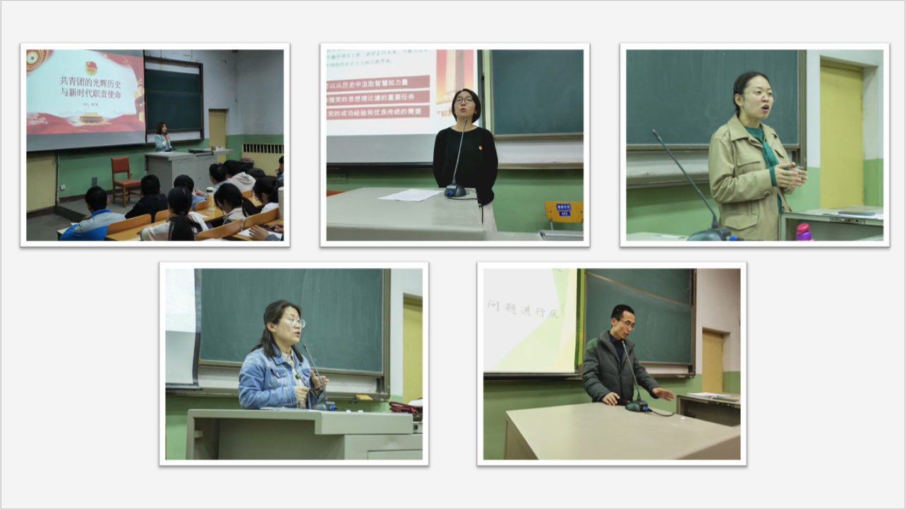 团委书记张丁香以学唱共青团团歌—《光荣啊,中国共青团》为开端,开展主题为“共青团的光辉历史与新时代职责使命”的团课第一讲。团委副书记刘安讲授了“四史”专题学习,以史为鉴,追寻先辈的历史传统,学习前辈的坚定信念,让同学们在历史的洪流中,明确初心不改,勇担使命向前。学工办主任刘宏伟进行了“第二课堂”的讲授,他强调了科技创新的重要性,并向团员们讲述如何在大学期间提高自己的学习能力与科研知识、提高自身综合素质,引起了同学们的浓厚兴趣。辅导员石婷以基础团委培训为主题,讲解了团员和党员的发展历程,让同学们对入党的过程有了整体的了解。王佩围绕团员如何提升个人能力以及团干部综合素质的要求讲述了综合素质测评的重要性。