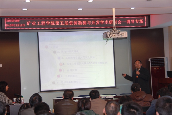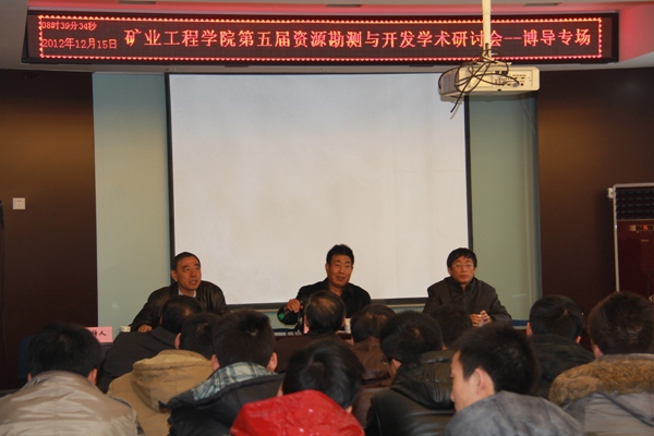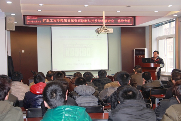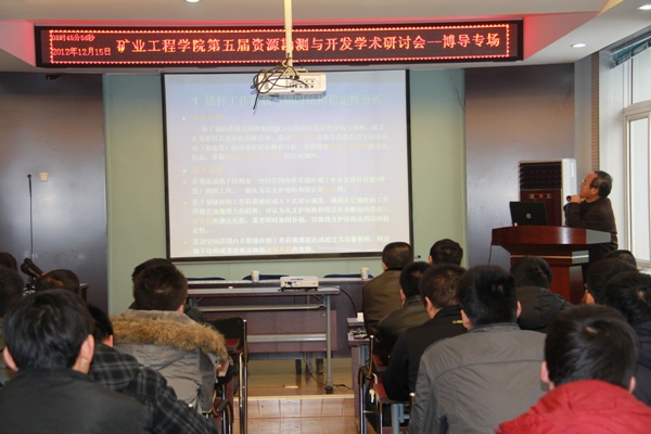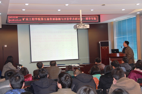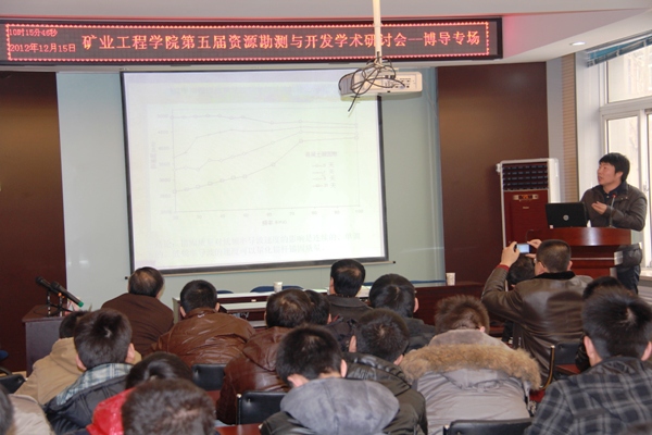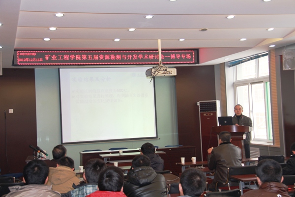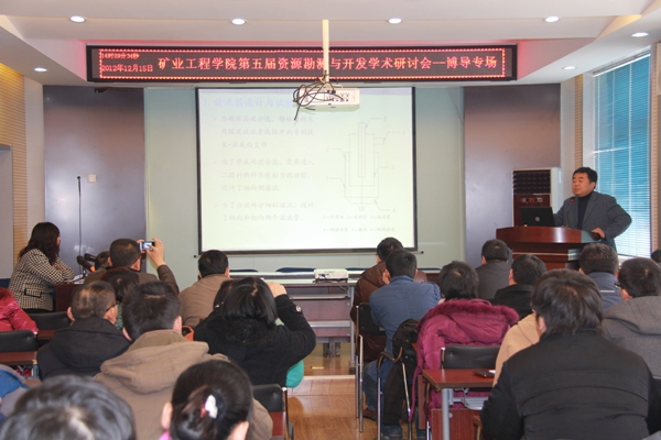 2012年12月15日太阳成集团tyc122ccvip在二层学术报告厅举行了太阳成集团tyc122ccvip第五届资源勘测与开发学术研讨会(博导专场),太阳成集团tyc122ccvip、采矿工艺研究所共15名博士生导师就矿产资源勘探、地质测绘及资源高效安全开采等科学技术前沿问题做了主题突出、特色鲜明的精彩报告,公司、研究所所有教师、部分博士、硕士研究生近二百余人参加了本次研讨会。