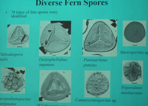 胡博士的报告《近来发现的美国白垩纪植物化石》向师生详细介绍了研究方法和思路,采样地点的选择,样品的采集、分离、制样过程,以及研究手段和分析方法。该项研究发现了78类不同的蕨类孢子、41类被子植物花粉、42类裸子植物花粉,暗示白垩纪时期蕨类植物具有丰富多样性,并建立了分散孢子和孢子囊之间的对应关系。不同的孢子与孢子囊的发现,说明在晚白垩纪早期北美中部广大地区的气候相对于现在更加温暖湿润。