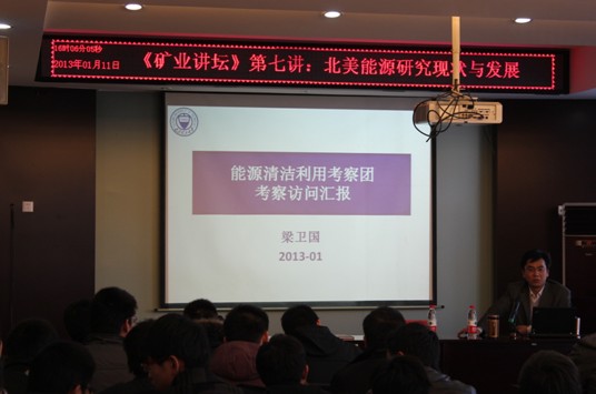 2013年1月11日下午4点,矿业公司采矿楼学术报告厅,公司经理梁卫国教授做客《矿业讲坛》,做了题为《北美能源研究现状与发展》的报告,并与公司各专业研究生开展了长时间的学术交流互动。