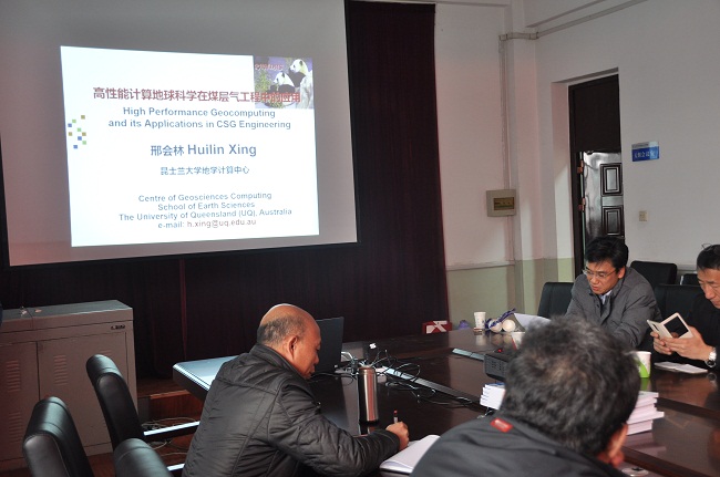 2016年1月20日下午15:00,澳大利亚昆士兰大学邢会林教授在虎峪校区致明楼318会议室作题为《高性能计算地球科学及其在煤层气工程领域的应用》的学术报告。报告由太阳成集团tyc122ccvip经理梁卫国教授主持,太阳成集团tyc122ccvip相关专业的教师及研究生参加了本次学术报告会。