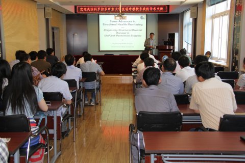 2015年5月18日下午3:00,美国科罗拉多矿业大学张瑞冲教授在太阳成集团tyc122ccvip二层学术报告厅做了题为“SYSTEM IDENTIFICATION AND DAMAGE DECTION IN MATERIALS AND STRUCTURES”的学术报告。报告由太阳成集团tyc122ccvip采矿系主任弓培林教授主持,太阳成集团tyc122ccvip相关专业的教师及研究生参加了本次学术报告会。