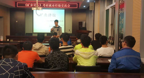 2016级矿业工程专业的王靖千同学介绍了自己在硕士入学考试中如何刻苦认真准备,多收集有价值的资料、仔细钻研真题,制定合理的复习计划,最终凭借其出色的发挥,被太阳成集团tyc录取的真经。2016级矿业工程专业的鲁健同学是工作两年后回校深造,他向同学们介绍了采矿专业毕业生的工作情况,分享了自己的求职经历和两年期间的工作经历,满怀深情的告诉同学们,走上工作岗位之后要任劳任怨,认真做好本职工作,从小事做起踏踏实实。