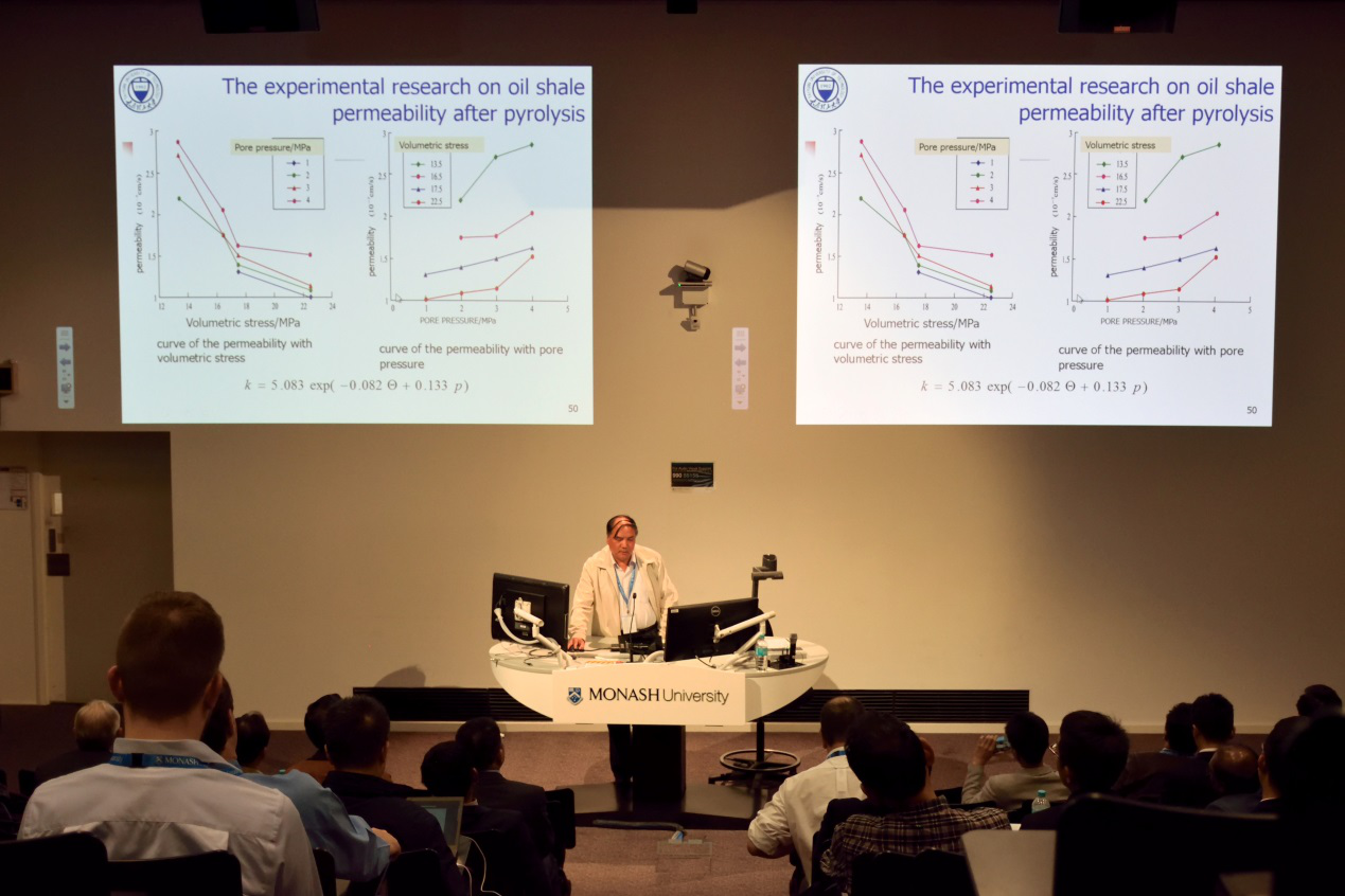 2016年9月27日至10月1日,公司赵阳升教授、张倍宁博士赴澳洲参加国际地质力学-地球能源-地球资源学术研讨会(International Conference on Geo-mechanics, Geo-energy and Geo-resources)。来自20多个国家,近200名代表参加了此次会议。会上,赵阳升教授做了《Evolution of physico-mechanical properties of granite under high temperature and high pressure & HDR exploitation---Evolving Porous Media mechanism, experiments, application》的主题报告,张倍宁博士在分会场进行了题为《Supercritical CO2 permeability and swelling in naturally fractured large coal mass》口头报告。会议间隙,赵阳升 教授与国际同行就地球能源开采方面的问题进行了热烈的讨论,并达成了一些初步的合作意向。会后,赵阳升教授一行参观了Monash大学及联邦科学与工业研究组织(Commonwealth Scientific and Industrial Research Organization)的实验室,并就一些实验情况进行了交流。