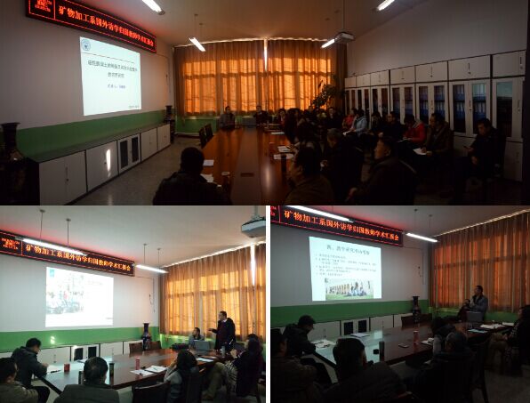 2018年1月24日下午2:30,在矿物加工系办公室举行了矿物加工系国外访学归国教师学术汇报会,由系主任董宪姝教授主持,系全体教职工参加。马建超副教授、张志强副教授分别就一年出国访学经历进行了详细汇报。
