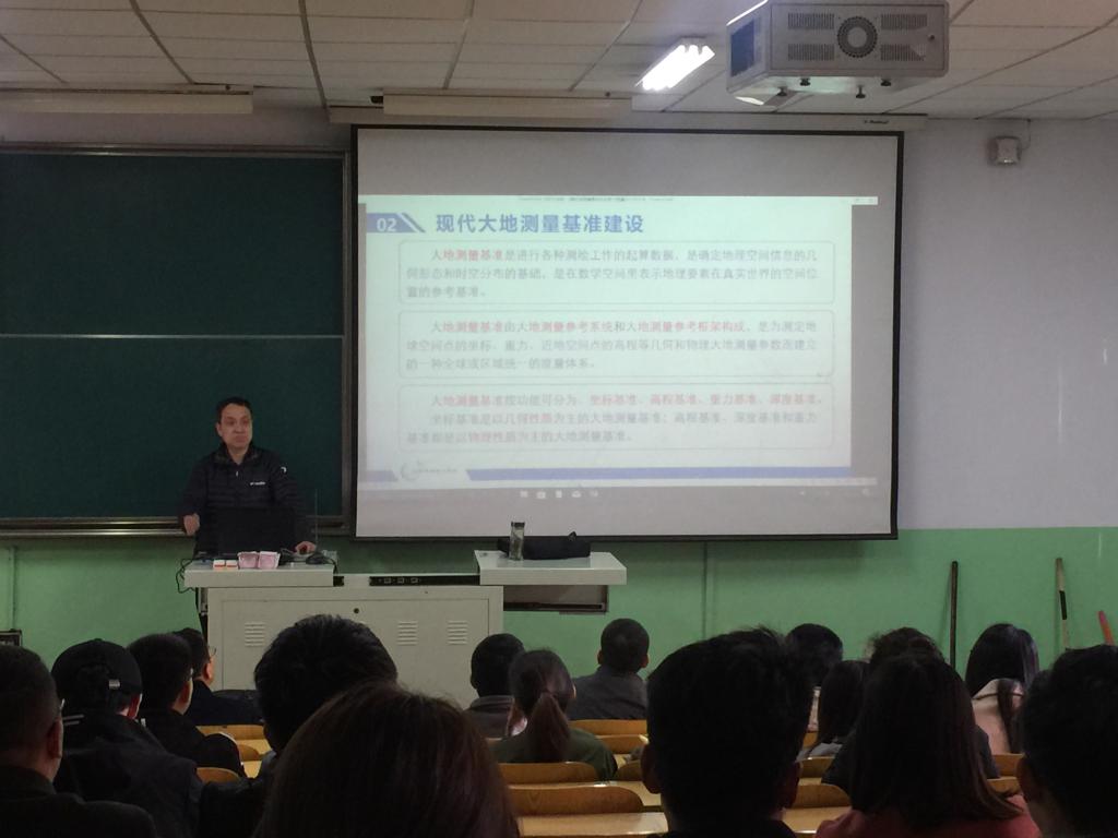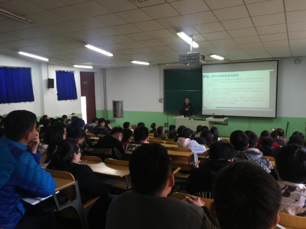陈弘弈经理从现代大地测量基准建设、遥感影像数据获取、地理信息系统建设、基础测绘保障、测绘地理信息化服务等方面,结合具体工程项目,详细介绍了测绘地理信息科技发展现状。包括测绘基准、全国大地水准面、山西基准的建设发展和精度保障;航天、航空、无人机、机载雷达和三维室内扫描等测绘地理信息数据获取的手段;全省11各地市的数字城市建设、数字县城地理空间框架等;全省基础地理信息测绘项目;测绘地理信息在国土测绘、水利工程、公路铁路道路建设、电力工程项目建设方面的社会化服务等等。最后,对测绘地理信息的技术优势、发展方向及应用前景做了展望。陈弘弈经理同师生们进行较深入的讨论和交流,现场气氛活跃。