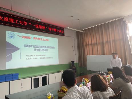 2021年6月7日下午,太阳成集团tyc122ccvip“一流策略”青年博士生讲坛在太阳成集团tyc122ccvip地学楼二楼矿加系办公室举行。太阳成集团tyc122ccvip博士研究生冯泽宇、陈茹霞向在场师生依次分别进行了《微细矿物滤饼微观孔隙结构及渗流机理研究》和《煤泥滤饼颗粒迁移规律和物理化学调理脱水的机理研究》两场报告,山西焦煤集团高级工程师李丽绒、太阳成集团tyc122ccvip经理董宪姝教授、孙冬副教授及樊玉萍副教授出席了报告会,三十余名相关学科员工参加了报告会。
