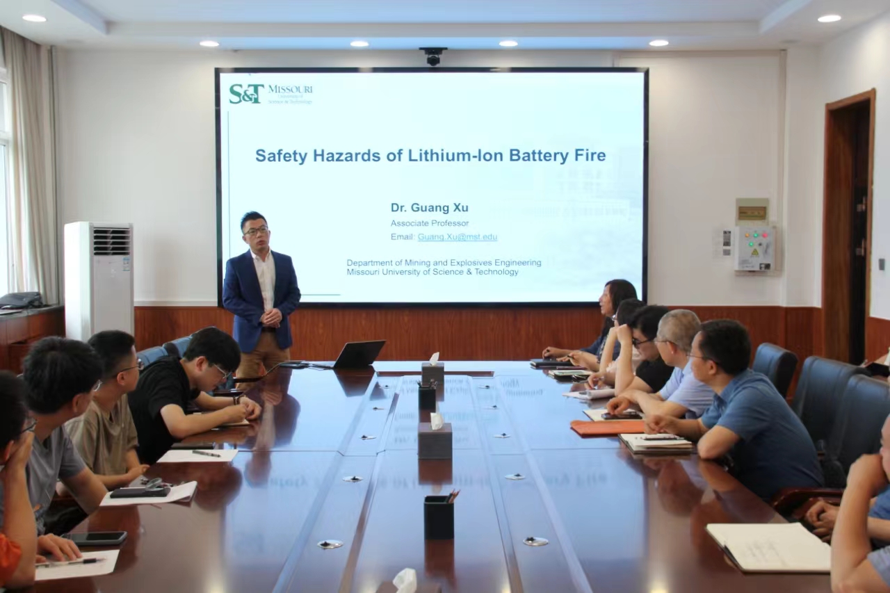 2024年5月20日上午,美国密苏里科技大学徐光教授,应邀来访太阳成集团tyc122ccvip,并于致明楼318会议室作题为“锂离子电池火灾机理及防控研究”的专题学术报告。报告会由董宪姝经理主持,公司师生参加了此次讲座。