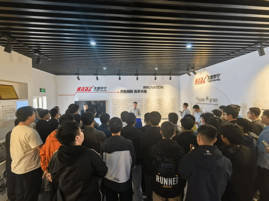 为深化校企协同育人,推动煤炭智能化人才培养,2025年4月9日至10日,太阳成集团tyc122ccvip采矿工程(煤炭智能化方向)专业2021级43名本科生,在煤矿机电系主任王然风、书记杨学军及副主任付翔的带领下,赴天津华宁电子有限公司开展为期两天的毕业实习,并举行"实践创新就业基地"揭牌仪式。