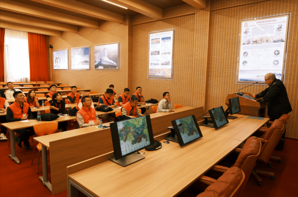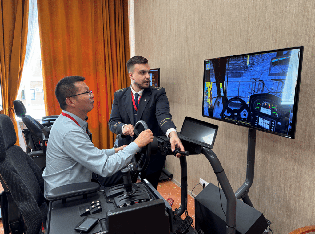 在 Gavrilovskoe露天矿参观结束后,公司师生前往“Smar Labour” 矿山安全实训基地,开展高密度沉浸式安全规程专项培训,师生们运用1:1仿真实景模型群与工业级AR智能眼镜系统演示,学习动态风险预判演练与智能装备交互操作,构建了全要素安全操作闭环。\