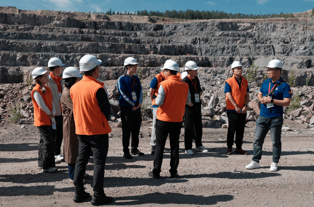 师生一同前往俄罗斯 Gavrilovskoe露天矿开展参观实践活动。师生在观景平台与工作面处,深入了解台阶划分与推进策略及边坡稳定性实时监测系统等露天开采的核心技术与管理要点,并就俄罗斯露天矿特有的地质条件适应性开采技术、大型设备运行维护经验以及环保安全措施等关键议题,与现场技术人员进行了探讨。