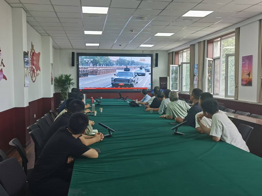2025年9月3日上午,采矿系党支部精心组织全体党员集中观看纪念中国人民抗日战争暨世界反法西斯战争胜利80周年大会现场直播。公司党委书记张忠璞、经理王开、副经理冯子军亦莅临现场,与支部全体党员一同认真聆听中共中央总书记、国家主席、中央军委主席习近平发表的重要讲话,并全程观看了盛大的阅兵仪式。此次观看活动,进一步增强了全体党员的爱国主义情怀和历史使命感,激发了大家为实现中华民族伟大复兴的中国梦而不懈奋斗的坚定信念。