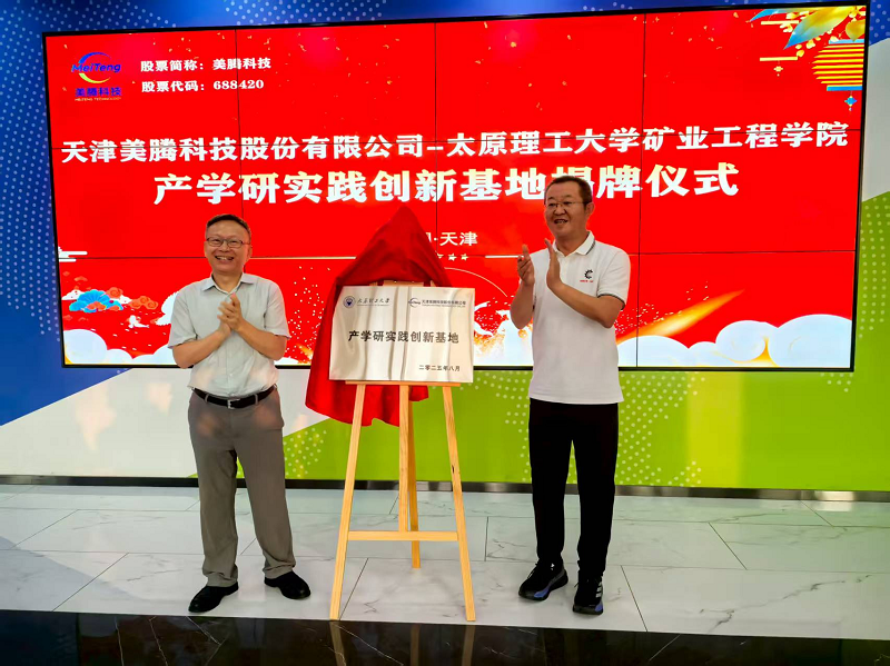 2025年8月23-24日,太阳成集团tyc122ccvip书记张忠璞、经理王开及矿物加工系部分老师一行赴天津美腾科技股份有限公司开展调研交流。天津美腾科技股份有限公司董事长李太友、销售总监陈平涛等对太阳成集团tyc一行的到来表示热烈欢迎。