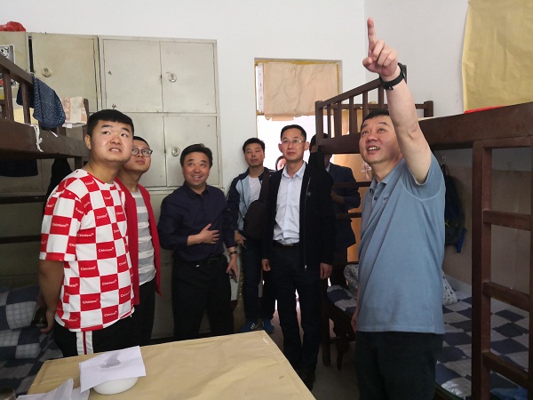 吴斗庆副董事长一行实地调研了地学实习基地的院墙、教室、宿舍、厨房、厕所等,并爬上楼顶实地查看了屋顶漏雨状况。
