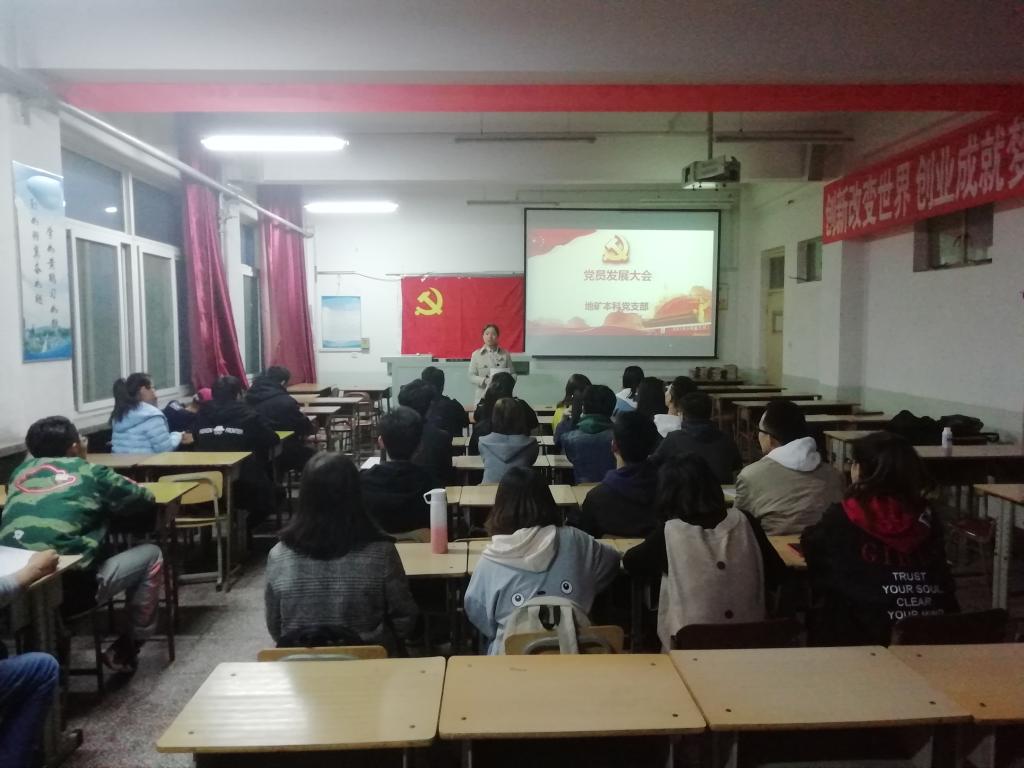 2019年3月27日晚,地矿本科党支部在致明楼621召开2019年上半年党员发展大会。支部全体党员和13名发展对象参加了会议,会议应到有表决权的正式党员13人,实到13人,会议由党支部书记武文婷主持。