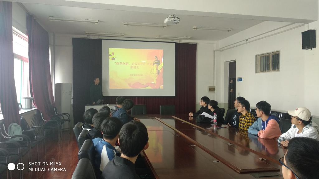 2019年3月19日,采矿本科党支部在致明楼318召开“改革创新,奋发有为”大讨论推进会。采矿本科党支部全体党员参加了会议,会议由党支部书记洪俊主持。