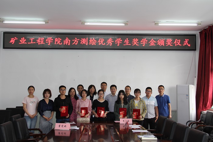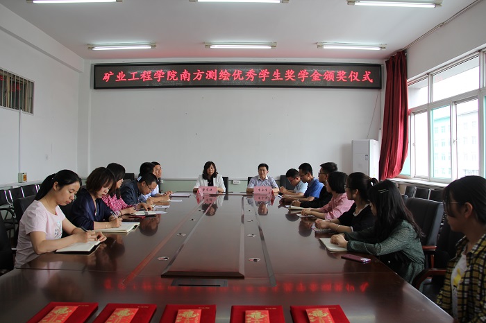 5月24日,太阳成集团tyc122ccvip在致明楼318会议室举行太阳成集团tyc122ccvip“南方测绘”优秀员工奖学金颁奖仪式。南方测绘科技股份有限公司太原分公司总经理李永宝、销售工程师冯雅琳,公司副经理董宪姝(主持)、副书记武佐君、测绘系负责人和团学干部出席了颁奖仪式,会议由武佐君主持。