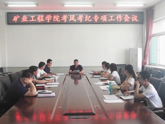 期末考试临近,为了树立良好的学风、考风,进一步加强考风考纪教育工作。5月30日,矿业工程公司在虎峪校区致明楼318会议室召开了考风考纪专项工作会议。公司党委书记薛武杰出席会议,员工工作办公室主任刘宏伟,团委副书记刘安,教科办曲珊珊以及学工办全体辅导员参加会议。会议由党委副书记武佐君主持。