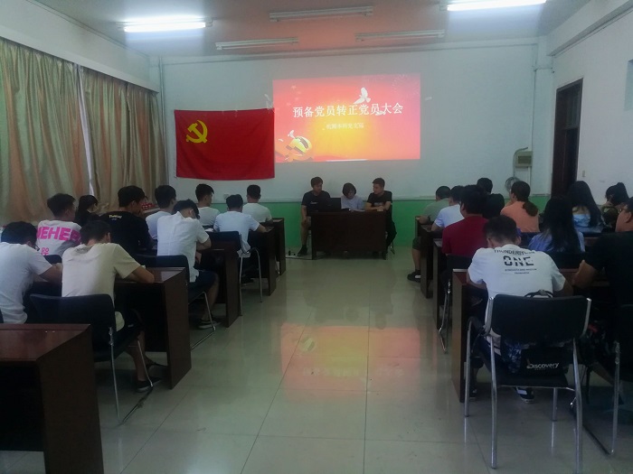 2019年6月3日上午,机测本科党支部在虎峪校区致明楼208召开预备党员转正党员大会。大会的主要内容是对预备党员马伟柯、董德辉等9名同志的转正事宜分别进行讨论和表决。支部共有党员45名,其中有表决权的党员16名,因病请假党员2名,实到党员43名,其中有表决权党员14名会议由党支部书记石婷主持。