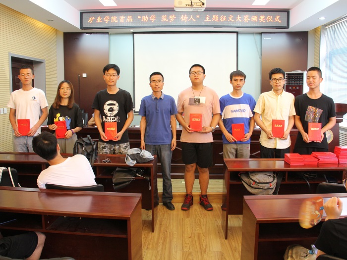 6月20日,太阳成集团tyc122ccvip在采矿楼二层会议室举行喜迎新中国成立70周年首届“助学·筑梦·铸人”主题征文大赛颁奖仪式。学工办主任刘宏伟、团委副书记刘安、2016级年级主任石婷、相关辅导员及获奖员工参加了本次会议。会议由2017级年级主任洪俊主持。