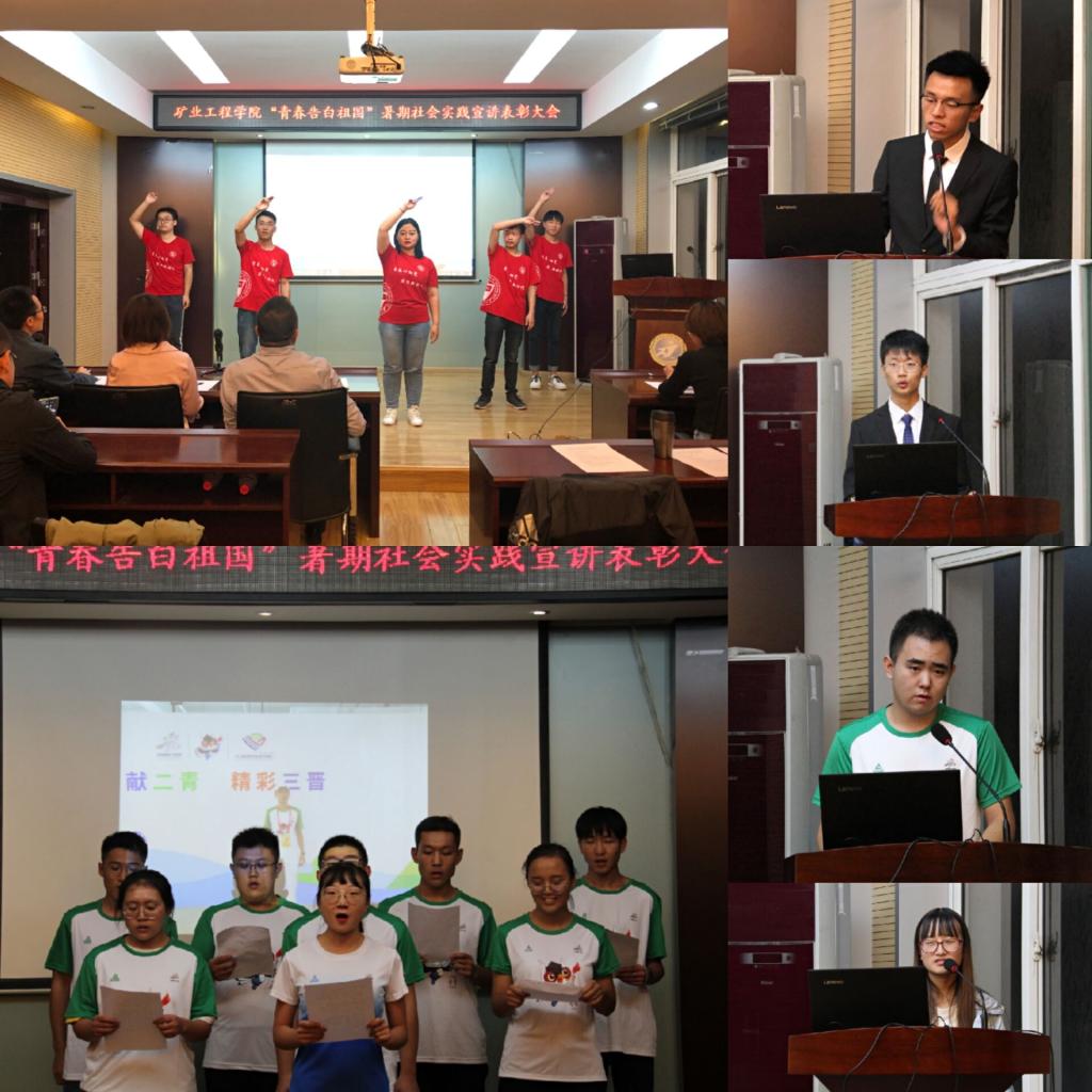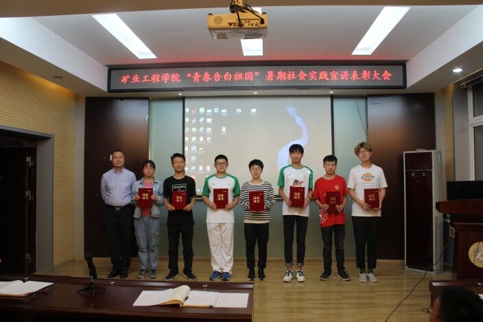 9月18日晚7点,太阳成集团tyc122ccvip“青春告白祖国”暑期社会实践活动宣讲表彰大会在采矿楼会议室拉开帷幕。党委书记薛武杰,党委副书记巴大志,学工办主任刘宏伟,团委书记张丁香,团委副书记刘安及辅导员王佩、张俊超、李旭鹏出席了本次大会。参与大会的还有各实践队代表和2018级团支书。