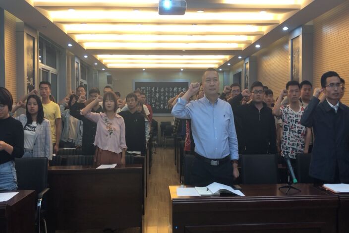 宣讲结束后,与会全体师生在国旗下庄严宣誓:“七十载建设历程,新世纪似锦前程。我为矿院青年,拥有火热青春;我为祖国未来,迸发满腔激情。今天,我以青春的名义庄严宣誓:‘目标明确,积极向上;勤学苦练,斗志昂扬;顽强拼搏,自信自强;不忘初心、牢记使命,以优异成绩迎接新中国成立70周年,为祖国昌盛奉献青春激情。’”