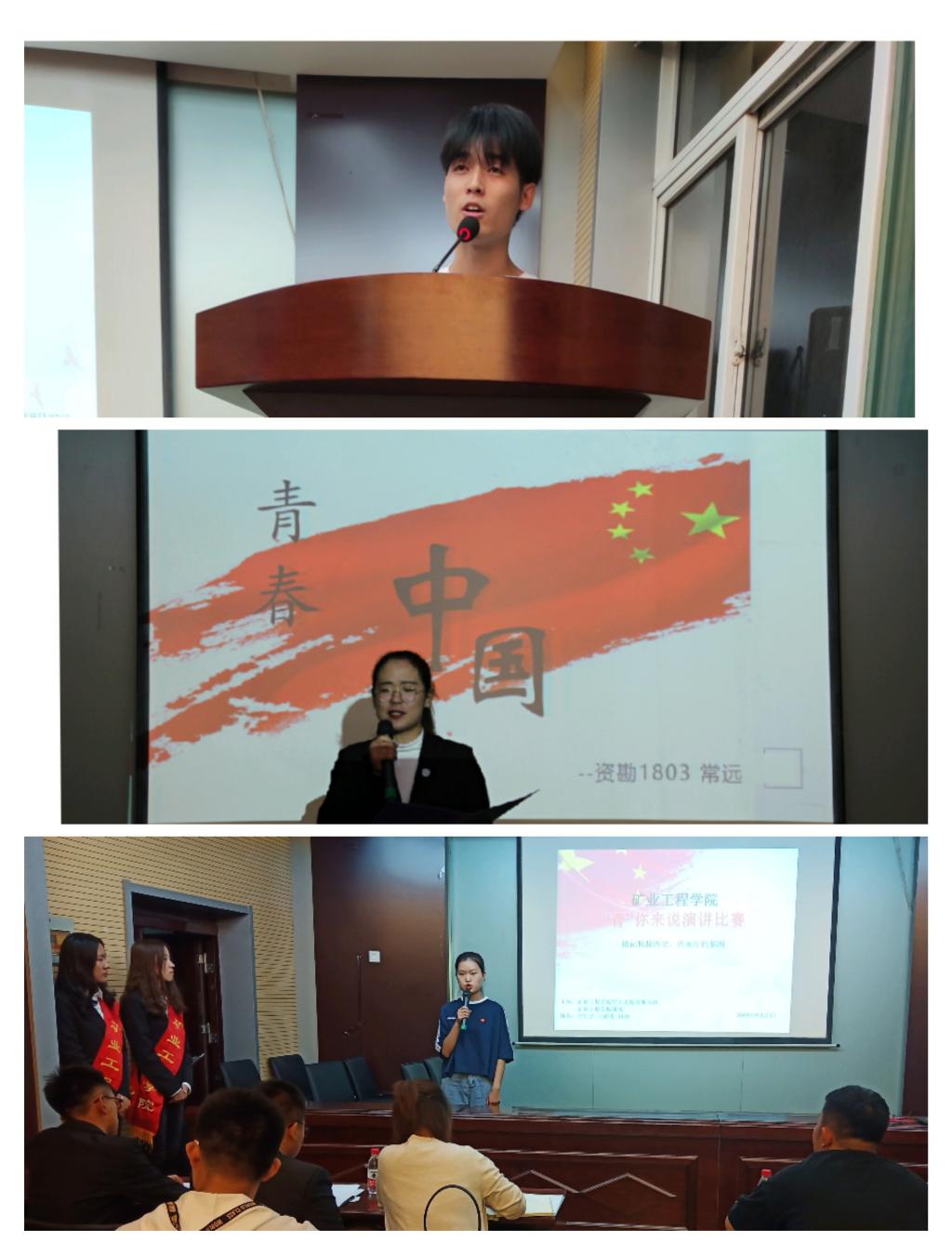 比赛分为三个项目,分别为“青”你来讲——时代新人说我和祖国共成长演讲比赛、“青”你传承——我和我的祖国红色故事讲解比赛、“青”你来读——阅读新时代共圆中国梦朗诵比赛。共有30余名选手进入决赛,参赛选手精神饱满,气宇轩昂,舞台上,演讲激情澎湃,同学们结合学习工作生活实践感悟,讲述弘扬爱国奋斗精神、争做时代新人的情怀;故事精彩动人,同学们分享自己最敬佩的抗战英雄故事,纷纷表示要学习他们身上的家国情怀、忠贞不渝的爱国主义信念和不怕流血牺牲的大无畏精神;朗诵感情真挚,同学们通过朗诵经典、品味悠远书香、提高文化素养,为实现中国梦不懈奋斗。最终采矿1801班谢智、地工1704班刘明珠、资勘1803班常远分别获得“青”你来讲、“青”你传承、“青”你来读的一等奖。