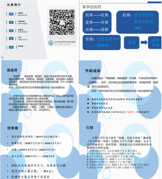 科协负责人代金鑫从大赛等级、参赛流程、报名时间介绍了近期开展的各类竞赛并强调了各类注意事项,包括有挑战杯、节能减排、创青春、三创赛、互联网+,为同学们积极备战提供了督促和帮助。