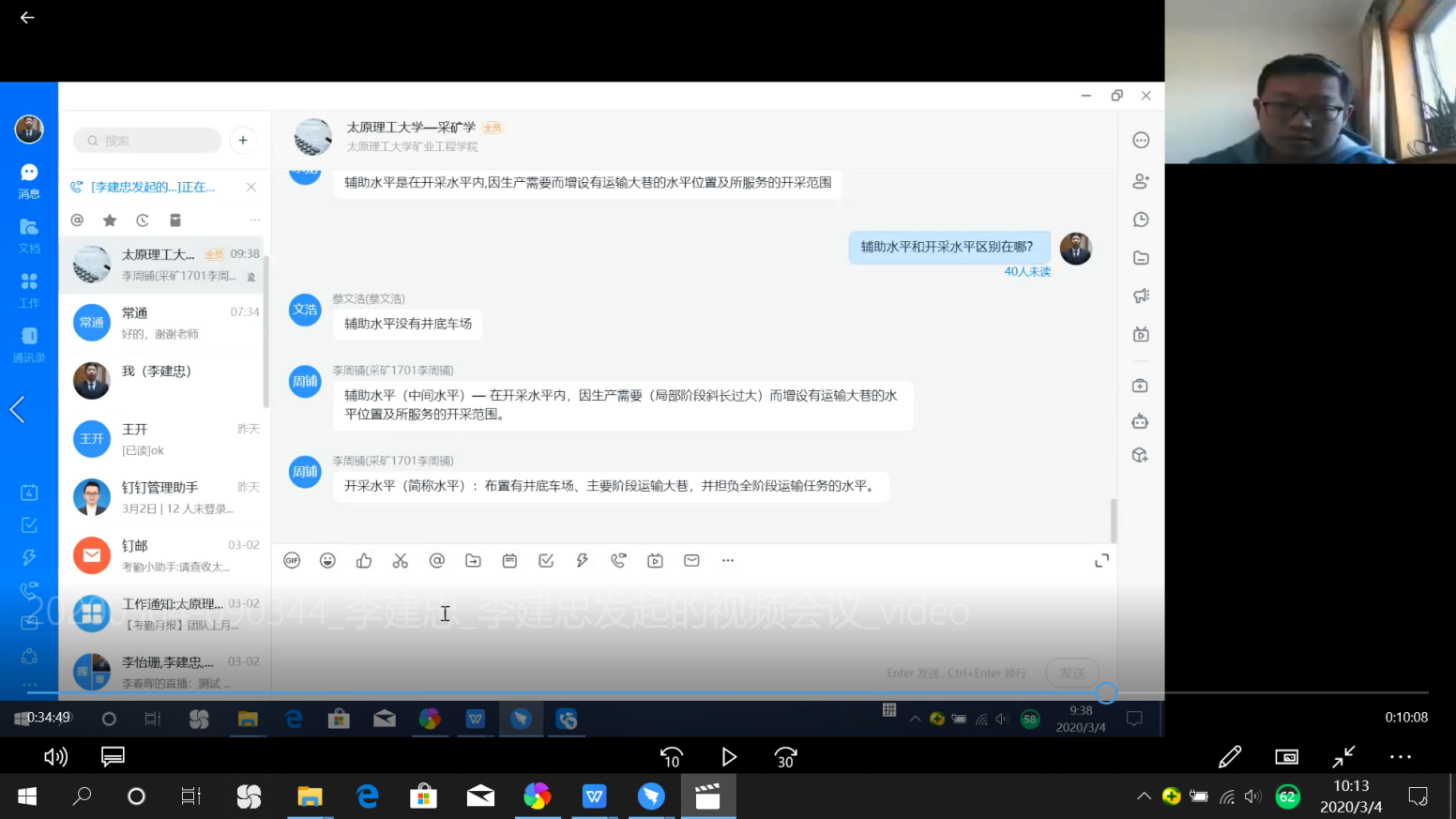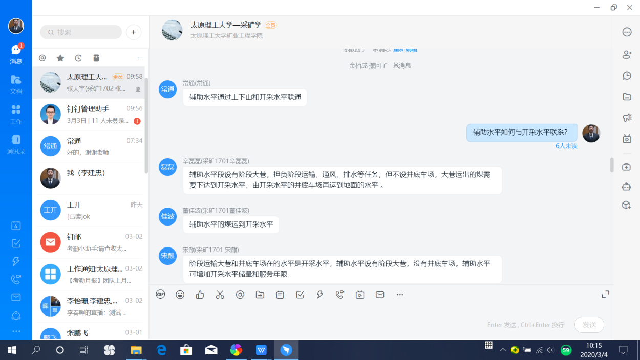 开学前,李建忠老师组织本学期讲授《采矿学A》课程的6位老师组成课程组。疫情形势下员工不能按时到校,网络授课成为主要的授课方式,针对这种情况,课程组坚决执行公司“停课不停教、停课不停学”的政策,积极商讨应对策略。课程组选用超星平台学银在线的《采煤学》慕课资源,该资源由西安科技大学制作,由于版权原因,公司教师只具备部分管理权限,且课程资源有限,只有知识点的视频,无练习和测试题目,不能完全满足《采矿学A》课程需求。为了保障特殊时期课程教学质量,课程组的教师根据自身情况,采用钉钉群、微信群、QQ群等多种信息平台,以视频会议、视频直播、微信互动等方式开展授课、讨论、互动、答疑等活动,经过两周时间的实际运行,取得了较为满意的教学效果。