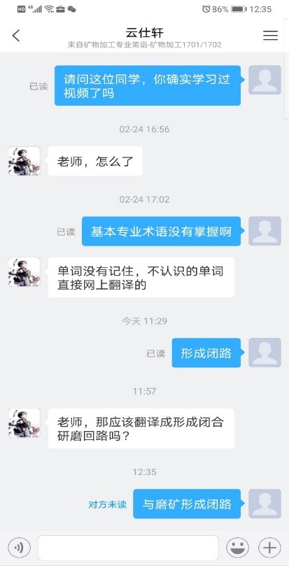 面对此次网络教学的特殊情况,授课教师开学前精心准备,通过仔细分析课程教学目标,以及专业认证、双一流建设等的核心理念,针对超星学习通以及腾讯会议等网络教学平台的特点,制定了适于《矿物加工专业英语》的教学方案和考核标准,实施三周以来,收到了良好的效果,员工反响很好,该课程教学班级共36名同学,开学6次课,网络访问量超过2000次。