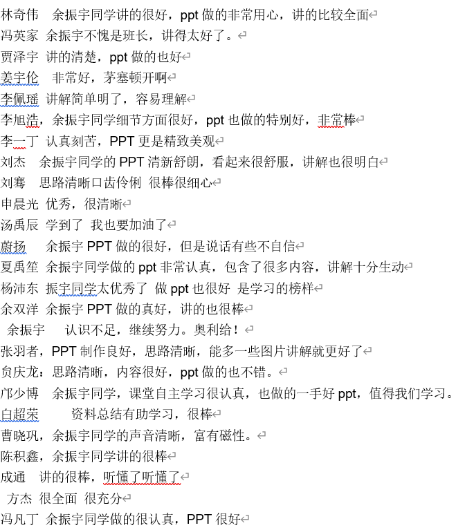 课前布置几个同学预习视频,然后自己制作PPT,在课中用腾讯会议的屏幕共享功能给同学们汇报讲解学习内容,达到反转课堂、提高学习能力的效果,如图 5,试讲同学得到同学们的肯定与鼓励,如图 6。