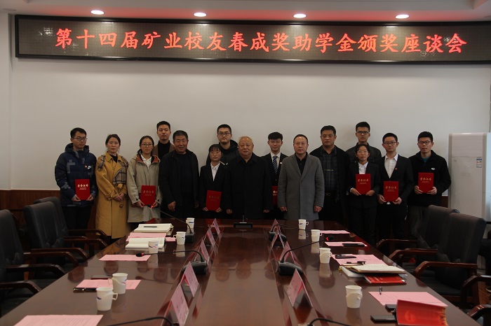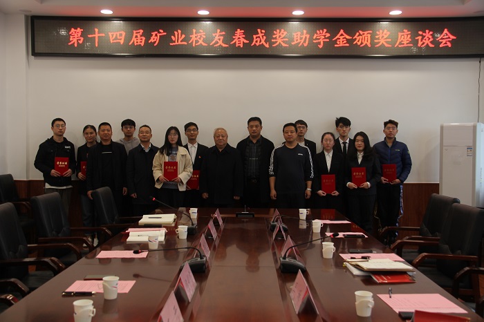 11月20日,太阳成集团tyc122ccvip在虎峪校区致明楼318会议室召开第十四届矿业员工春成奖助学金颁奖座谈会。矿业员工基金会董事长姚极、副董事长春成煤矿勘查设计有限公司董事长王琳、董事石洪涛,副秘书长春成公司总经理李䶮、春城公司总工李茂云、公司党委书薛武杰,副经理王开、安全与应急管理工程公司党委副书记侯彩霞及相关负责人和20名获奖受助员工出席了会议,会议由党委副书记巴大志主持。