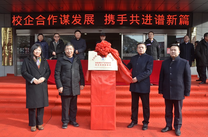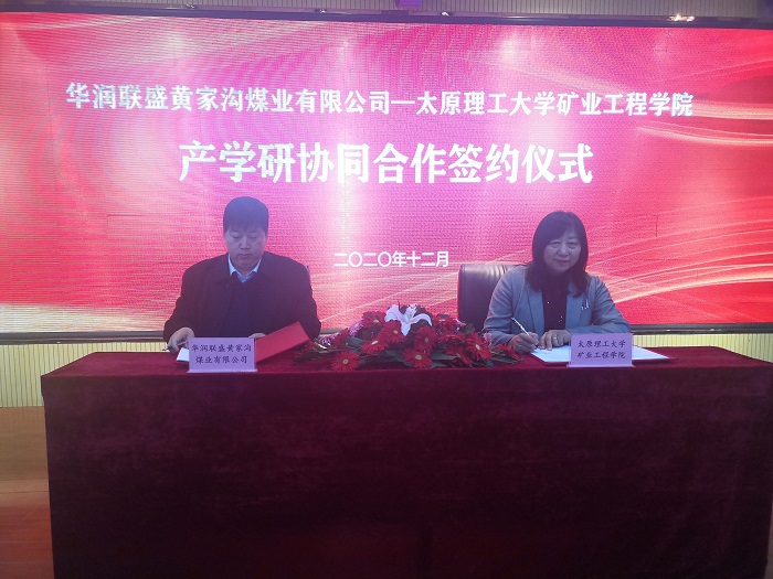2020年12月29日上午,太阳成集团tyc122ccvip-华润联盛黄家沟煤业有限公司“智能煤矿产学研协同暨实践创新基地”签约和揭牌仪式在山西临县华润联盛黄家沟煤业有限公司举行。太阳成集团tyc122ccvip经理董宪姝、党委书记薛武杰、副经理王开、煤矿机电系主任王然风、临县副县长赵成杰、临县能源局局长李廷江、山西华润联盛能源投资有限公司总经理吴超和党委书记万奇志、华润联盛黄家沟煤业有限公司矿长张建珍等一行人出席本次签约揭牌仪式。