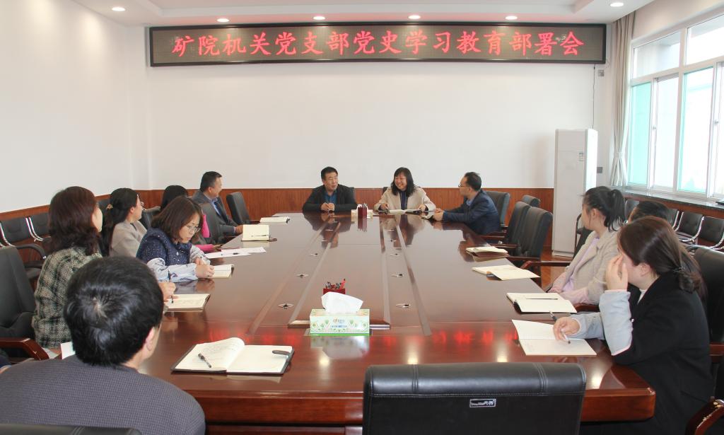 根据公司党委工作安排,矿院机关党支部2021年3月12日下午在318会议室召开了党史学习教育部署会,矿院机关党支部全体人员参加了会议,会议由支部书记郝书平主持。