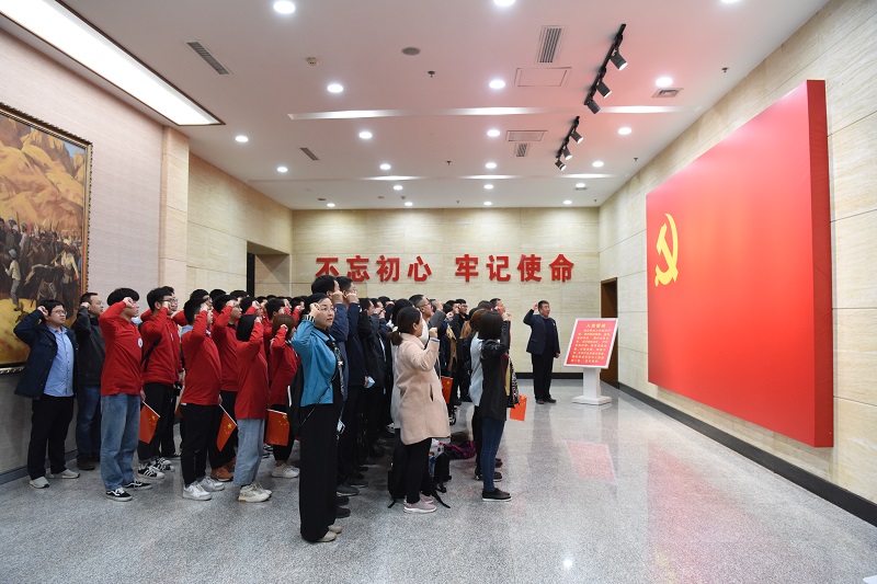 纪念馆门前,全体成员高唱“没有共产党就没有新中国”革命歌曲。纪念馆内,全体党员进行了入党宣誓,重温了入党誓词,牢记和坚定共产党人的初心和使命。集体参观了纪念馆,认真聆听讲解员述说老一辈革命家的丰功伟绩,驻足细看陈列的文物、文献、书籍和照片,回顾八路军英勇抗击日本侵略者的革命历史,重温中国共产党波澜壮阔的伟大历程。实地参观后,分组进行了充分交流,畅谈了体会感悟。