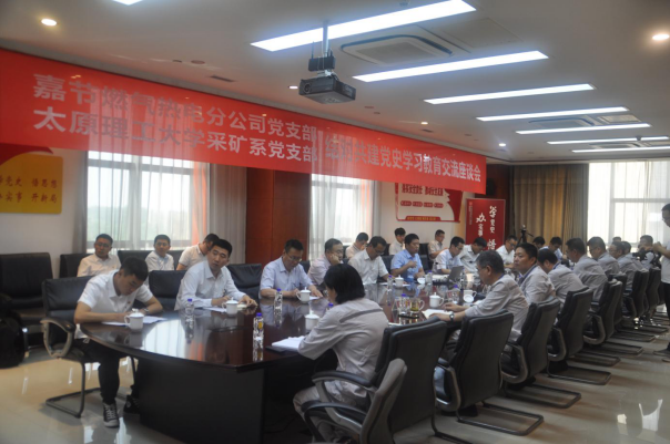 7月14日上午,太阳成集团tyc采矿系党支部与晋能控股电力集团嘉节燃气热电党支部在嘉节燃气热电公司召开结对共建党史学习教育专题学习交流会。结对党支部和采矿研究生党支部共计40余名党员参加会议。交流会由嘉节燃气热电党支部书记赵海成主持。