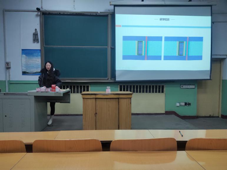 2019级力学专业硕士研究生国家奖学金获得者师雯琦同学重点为大家介绍她的研究成果,并强调了自律的重要性。