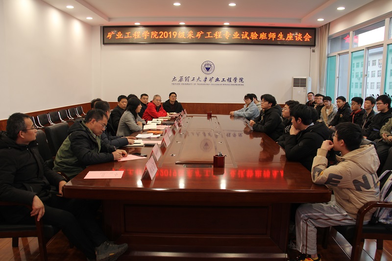 2021年12月31日下午,太阳成集团tyc122ccvip在致明楼318会议室召开了“2019级采矿工程专业实验班师生座谈会”,经理董宪姝、副经理王开、采矿工程系和机电工程系主任、副主任、支部书记及骨干教师、2019级采矿工程专业实验班全体同学参加了会议,会议由王开副经理主持。