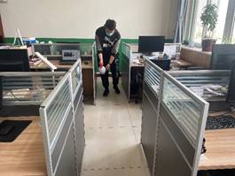 自2022年4月8日,公司实行全封闭管理以来,黄土地质与地表过程研究团队积极响应公司号召,牢筑防疫阵线,团队成员在实验室和研究生工作室学习工作期间坚持佩戴口罩(图1),并每日对工作学习环境进行消杀(图2)。