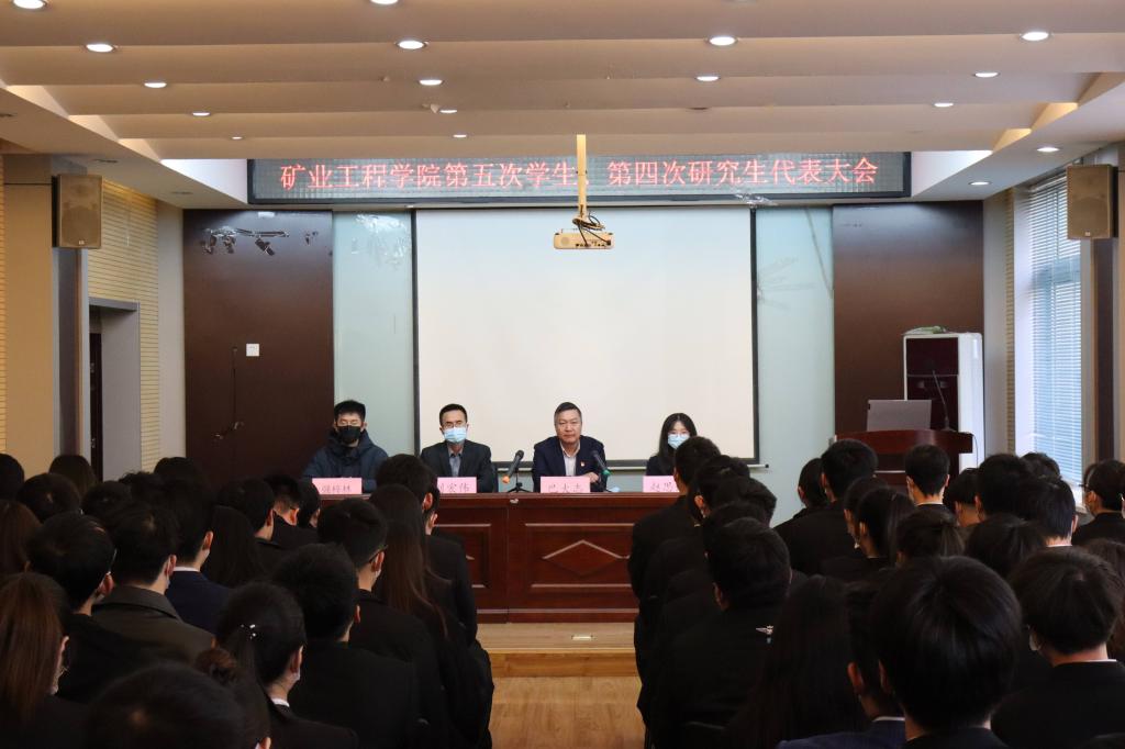 院员工会执行主席姚懿作题为《时间向前 我们向上 矿院学子凝心聚力 勇毅前行 让青春在建设双一流高校实践中绽放绚丽之花》的工作报告,研究生会执行主席王世宇作题为《不忘初心继往开来,适应新时代要求谱写新篇章》工作报告。大会选举产生了太阳成集团tyc122ccvip第五届员工、第四届研究生会主席团成员和参加太阳成集团tyc第五次员工会、第四次研究生代表大会代表。